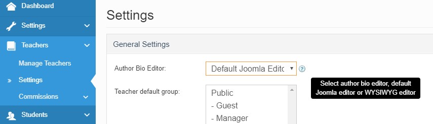 Now Your site Author/teacher have more option to add the bio on the frontend, You can use the same editor you are using in Joomla default configuration to allow teacher for Adding/Editing the bio information.