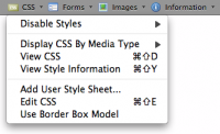 • Reveals the CSS of any web page. Click anything on the page and you can see the CSS behind it. That’s extremely useful if you need to make changes to the CSS and don’t want to waste time plowing through the code. The toolbar shows you the CSS file name, the row and the code itself.